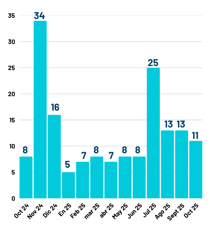 11 nuevos prisioneros políticos en Cuba se han registrado en octubre de 2025, y este mes ha habido 16 bajas tras el cumplimiento íntegro de la sanción o medida impuesta