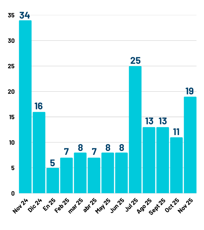 19 nuevos prisioneros políticos en Cuba se han registrado en noviembre de 2025, y este mes ha habido 6 bajas tras el cumplimiento íntegro de la sanción o medida impuesta